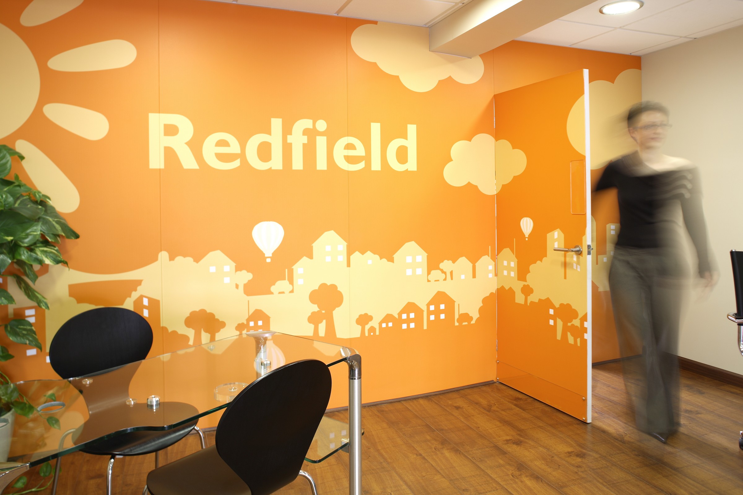 After talking to staff, we realised that it would be useful to have a large local map handy on a daily basis, with which to discuss the area with customers. So we expanded the brand to the walls - quite literally - with digital wallpaper. A map of the surrounding area covered one wall, with the back wall reflecting the brand colours and local identity. This was further enhanced with bright orange, screen-printed wall hangings, branded computer screen wallpaper and attractive branded window vinyl to draw customers in.